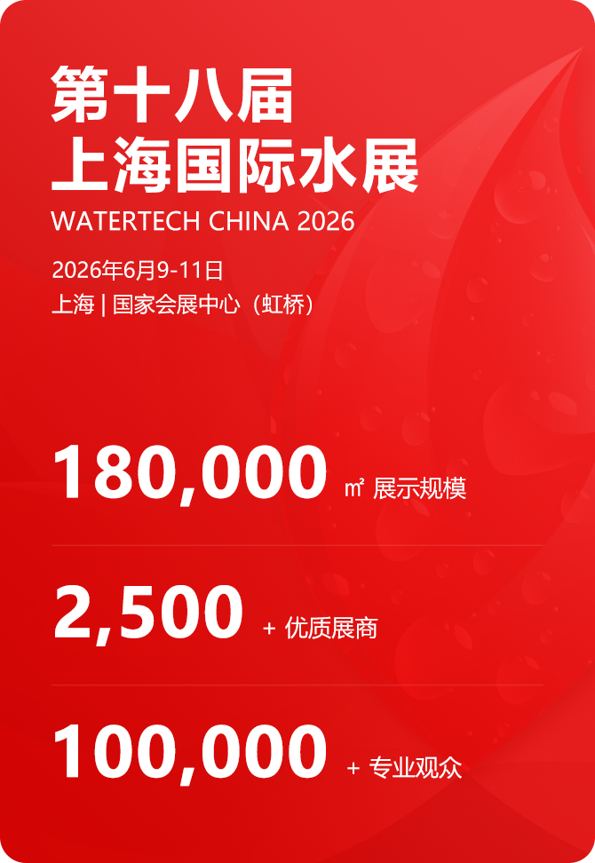 作为全球规模最大的水处理展,第十八届上海国际水展将于2026年6月9-11日在上海丨国家会展中心(虹桥)开启新征程。本届展会将全方位展示废水、污水、污泥、工业净水、膜及膜配件、泵阀、管道及仪器仪表等系列产品,覆盖市政、工业污废水处理两大领域,为到场的观众提供一站式多场景采购平台,同时为企业增加品牌曝光,提高市场份额,高效助力企业业务的焕新增长。